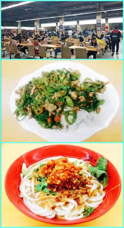食堂菜品时常创新,味道可以满足学生多种口味。食堂的菠萝饭,荤类小炒等有很高的人气。