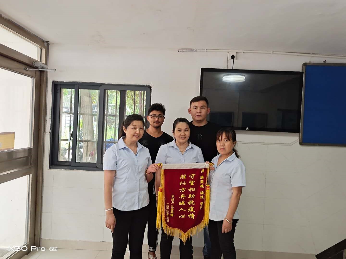 “疫情无情人有情,贴心服务暖人心”, 随着疫情得到控制,学生陆续返校,当见到笑容满面、温暖贴心的宿管阿姨时,学生送上了大大的拥抱和祝福的鲜花; 学生毕业,即将离开温暖亲切的宿管阿姨,难分难舍之际,赠上“守望相助抗疫情,胜似方舟暖人心”的锦旗。在落实人才培养中心地位工作中,公寓人始终坚持立德树人根本任务,心怀大爱,用自己的无畏坚守和无私奉献为同学们遮风避雨,用实际行动诠释着生命的意义和教育的价值,践行着公寓人服务育人的真谛,在此次疫情防控大考中,交上了一份满意的答卷。