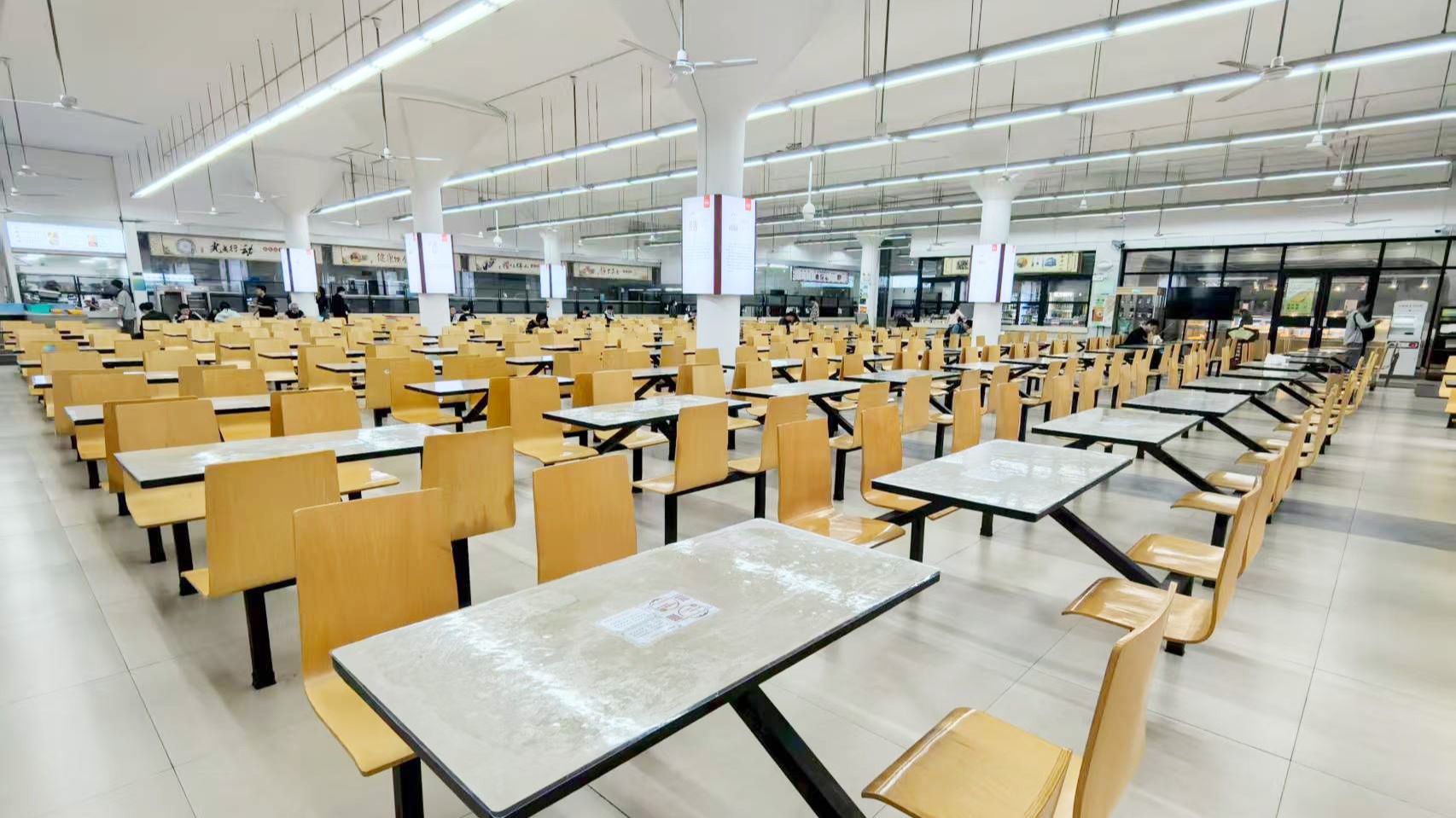 食堂整体环境舒适,就餐品类丰富!提供自助用餐、大众自选、精品小炒、地方风味、精品西餐、精品夜宵等多样选择,为满足大家的饮品需求,特引进瑞幸咖啡进驻,还有3个精品包厢可满足萌新们的聚餐需求哦(需提前预订)。