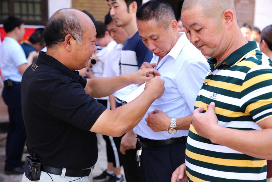 总公司领导向优秀党员代表佩戴党员徽章。全体党员互戴党员徽章。