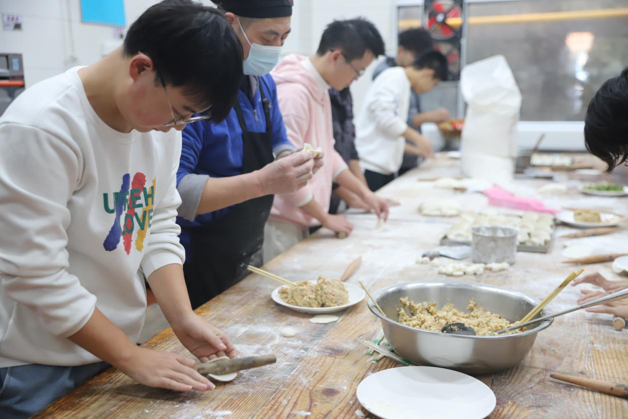 冬至节气组织学生包饺子。